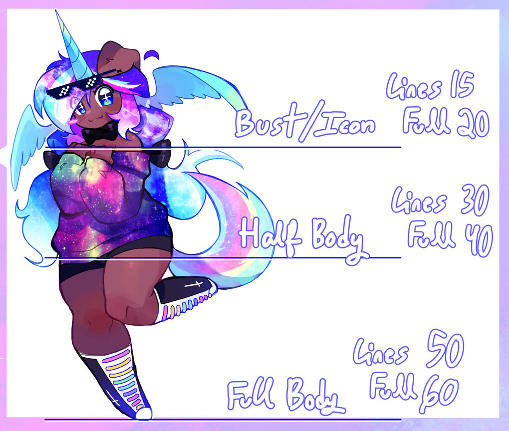 ★do not use my art for ai training.★please credit me when using my art! do not remove watermarks (you can ask for a watermark-less version, just do not claim it as your own work)★Payment is accepted up-front! i accept cashapp and paypal(until further notice).★i accept robux for busts and half-bodies; 400 for a bust, 800 for a half body. these will always be minimally shaded.★I send a wip when i have finished the sketch, and another when i have finished the lineart. i tend to finish these in one sitting if i can, so i usually do not update until i'm finished.★Please send me any visual examples for your piece! I can work off text, but it's easier and much appreciated if you give me something visual to go off of too; i'll take photobashing, mspaint drawings, anything!★I work on weekdays; i am also a college student, so that can interfere with progress. If progress has not advanced past lineart, I can issue a refund if needed.